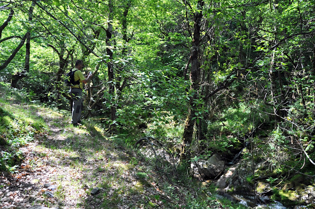 Repuestas las fuerzas el pelotón que aún sobrevive a tal difícil prueba reinicia la ruta… Toca bajar por guapo sendero hasta la fuente de Llanavao, aquella de la que todo el que bebe muere, según el paisano que habita en la casa colindante… .