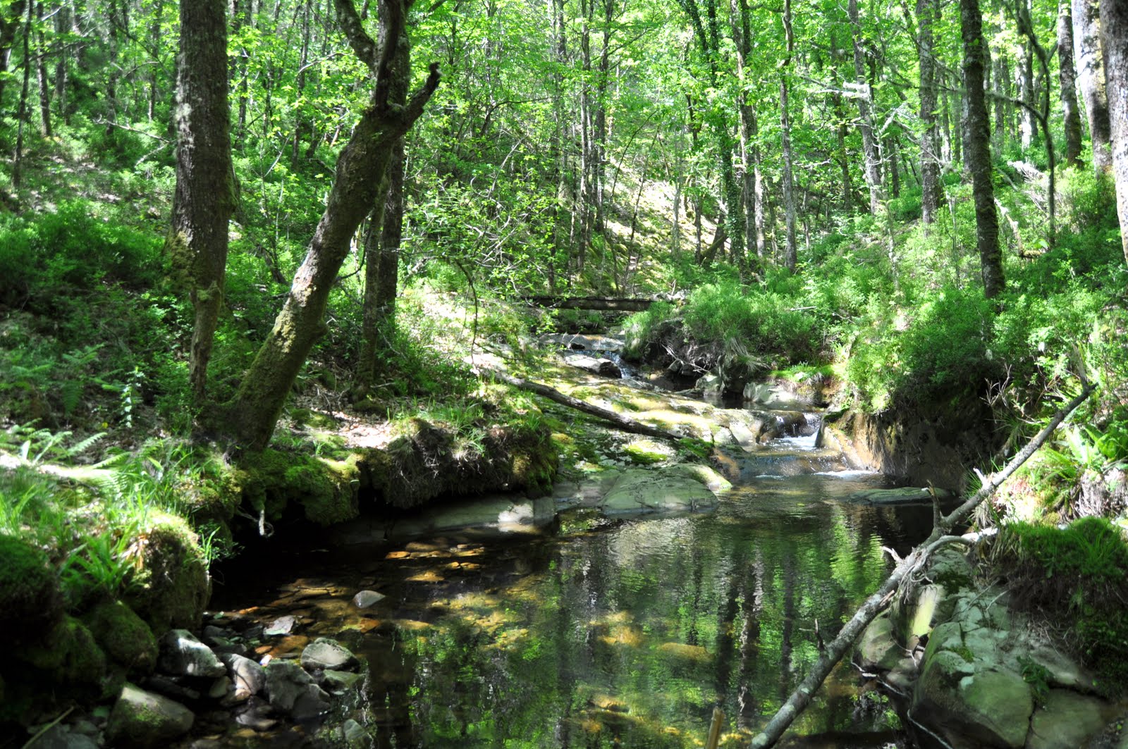 …Una rápida y veloz bajada salpicada por algún que otro pedrolo nos hace lanzaros en sucesivas zetas al mismo río Villa, el cual cruzamos por un puente en busca de las pistas de la ruta del agua. Los primeros según parece ya han llegado al primer avituallamiento liquido del día en Xunceu
